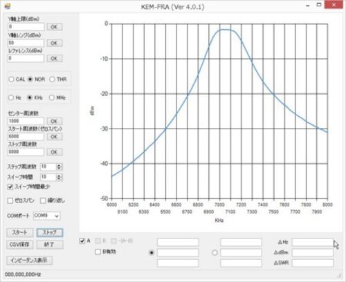 上:2号機を7000-7100kHzピークにしたとき、下:1号機(固定) 似たり寄ったりではあるが、2号機の方が幾分Qが高く、挿入損失減衰はわずかに小さいようだ。